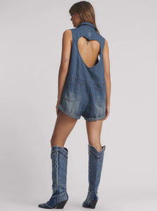Braxton Mini Hemp Heart Cutout Denim Jumpsuit - Faded Blue  - Vendor