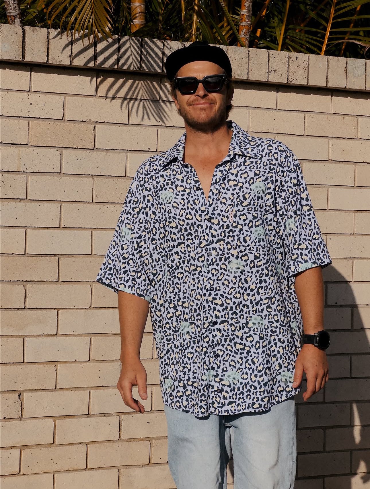 Made from 100% Rayon crepe. We designed this button up with a drop shoulder for an oversized looser fit. The rayon hangs nicely and good vibes are guaranteed when wearing this shirt!